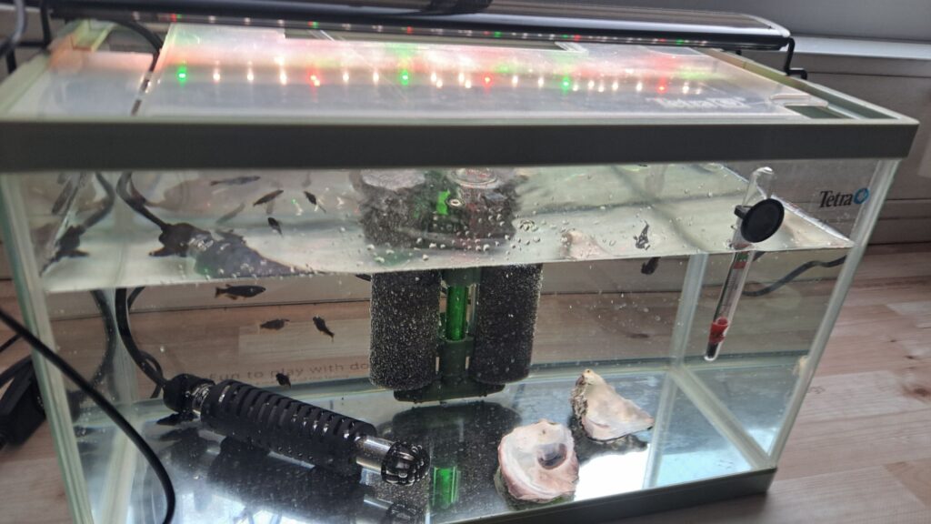 今回の室内移行に合わせて、飼育環境をさらにグレードアップさせるため、テトラ製のフィルターと新しいLEDライトを導入しました。