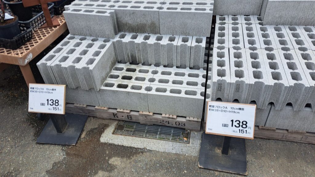 今回の棚作りでこだわったのは、できるだけ手間をかけずに、強度を確保することです。そこで選んだのが、ホームセンターで手軽に手に入るコンクリートブロック。